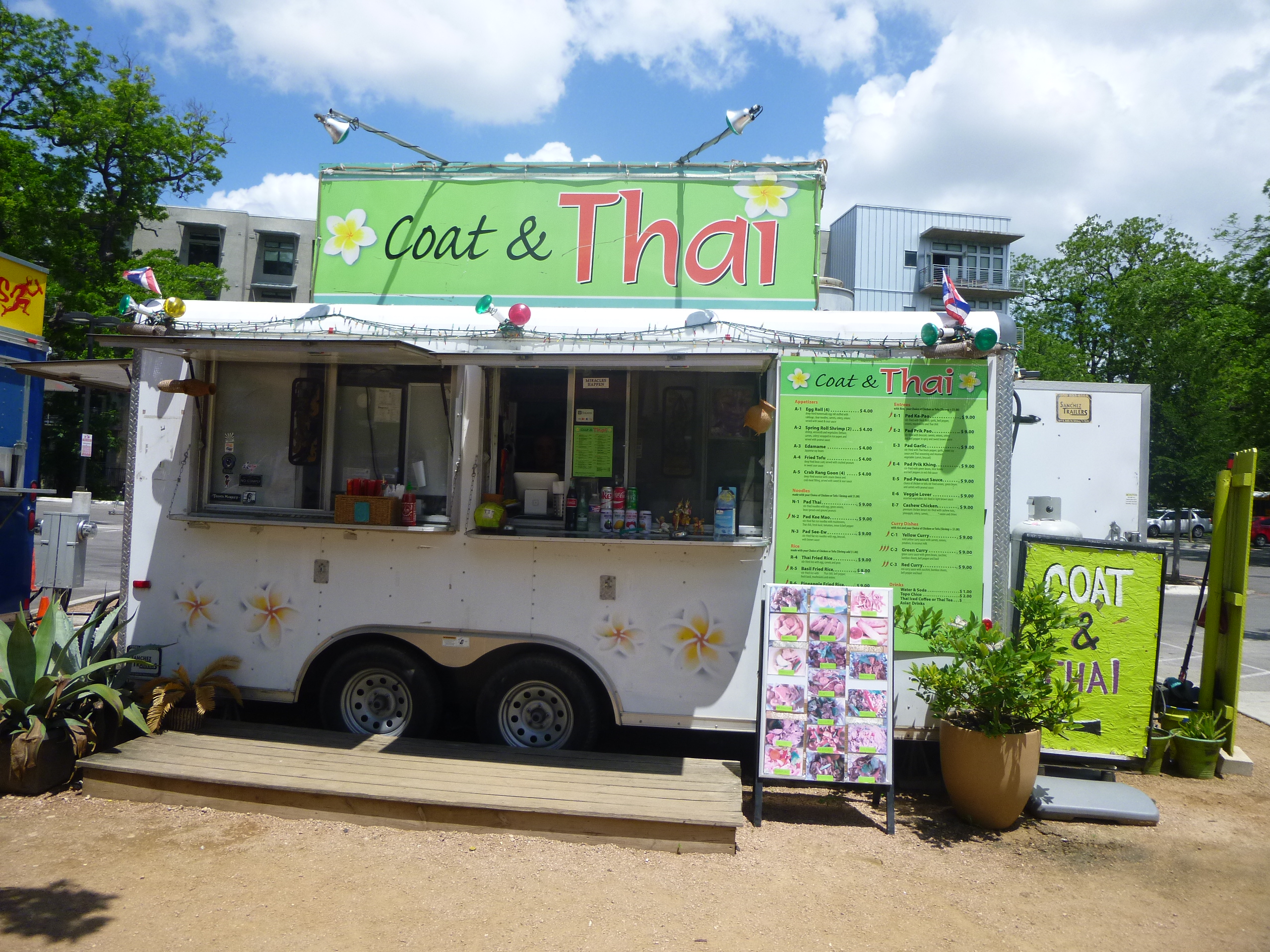 After all the exercise it was necessary to get some food. I had never eaten from a food truck and Austin is known for having some great trucks with a lot of variety. Coat and Thai was our choice for some good Thai food (and what a clever name).