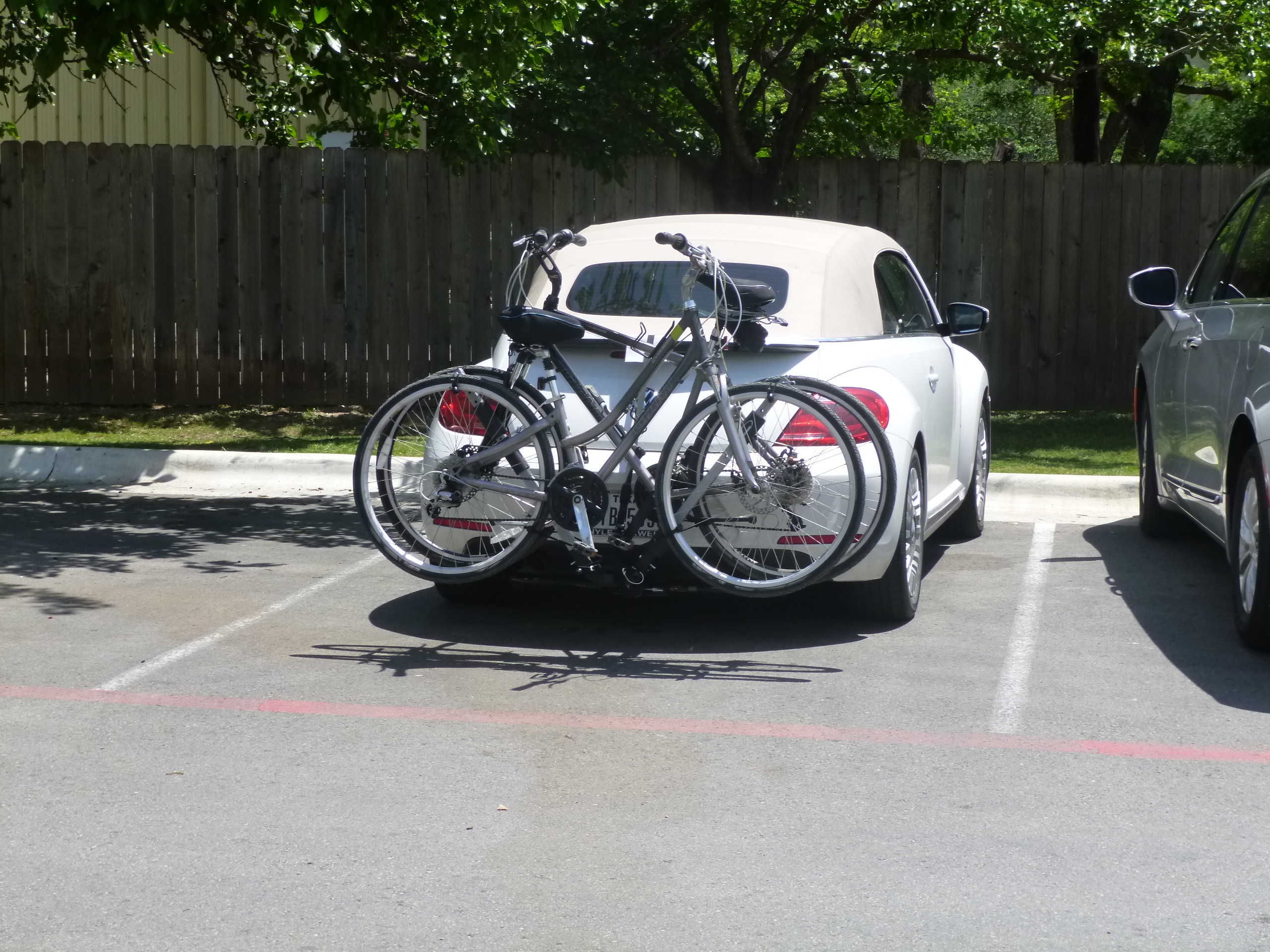 We have been itching to get a bike ride in since it had been months since we have been in locations that really allowed for it. A bike ride through Zilker Park and around Lady Bird Lake sounded like just the thing. As a bonus we got to try out our new bike hauler on the back of the Beetle. It worked great and was much safer than bungying them to the back seat with the top down. (Yes we really did that and got many laughs from our fellow campers).